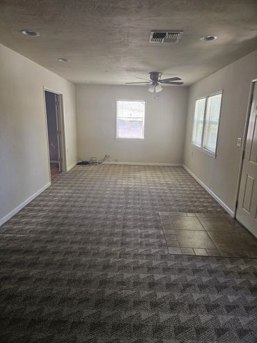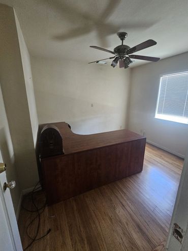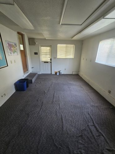 large office space approximately 1200 sq ft with live in work in potential. This office space includes plenty of off street parking, 1.5 baths, partial kitchen, 2 private offices and 2 larger common areas. It also has a storage room in back and a backyard with locking gates central heating & cooling and ceiling fans. Landscaping included. Available now!